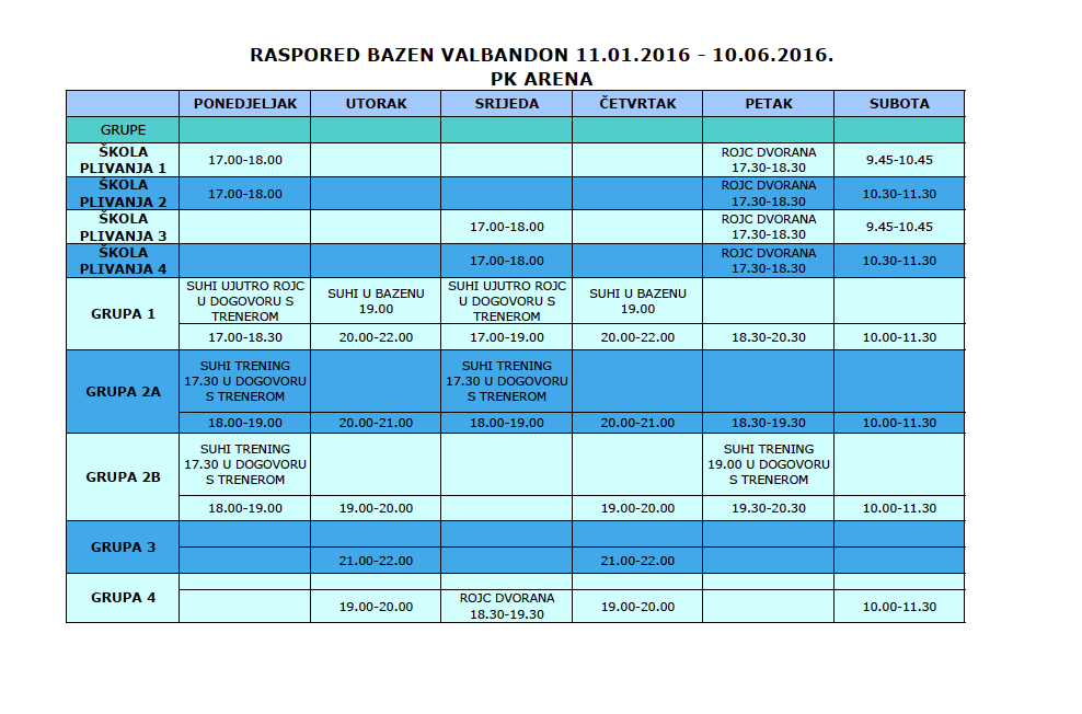Novi raspored treninga od 11.01.2015